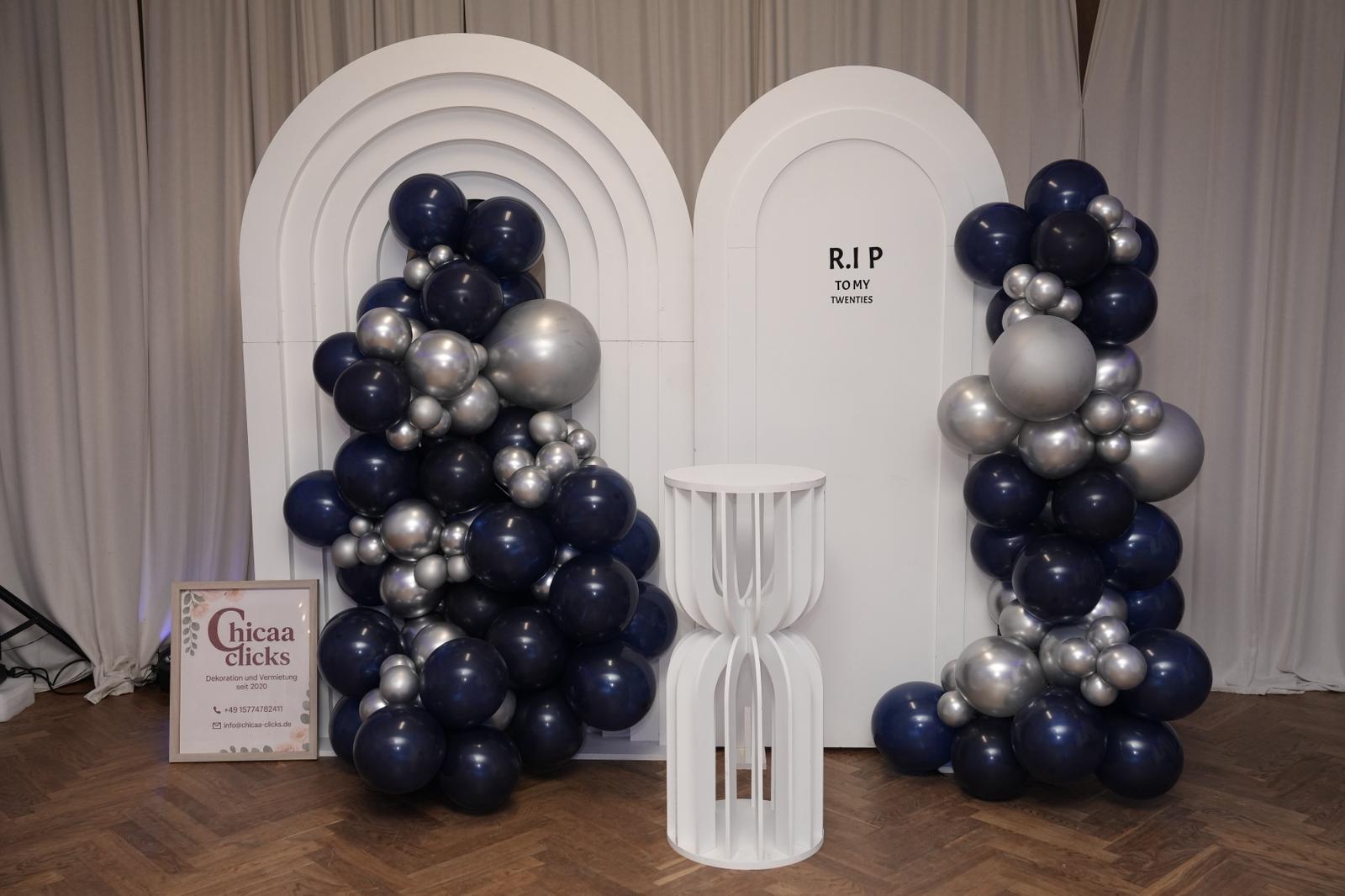 Unsere Wooden Wall mit Ballondekoration verbindet natürliche Holzoptik mit modernem Design. Die Kombination aus Dunkelblau und Silber wirkt edel,…
