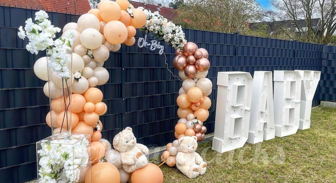 Dazu gestalten wir kreative Ballondekorationen: von farbenfrohen Ballonbögen bis zu individuellen Arrangements in deinen Wunschfarben. Mit unserer liebevollen Baby Party- und Kindergeburtstag Dekoration wird jeder Anlass einzigartig, fototauglich und voller Freude.